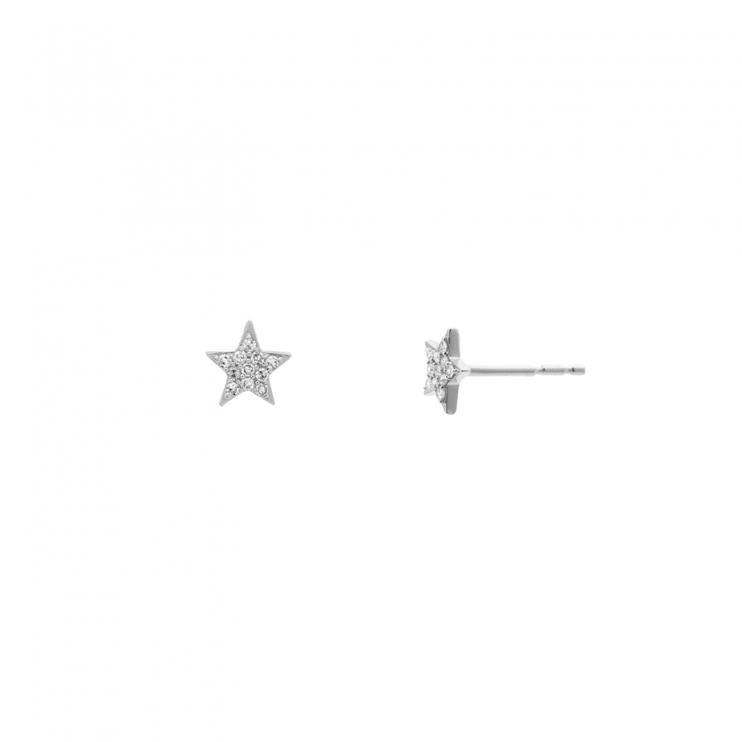 Cercei din argint placat cu rodiu, aur galben de 14K sau aur roz, decorați cu mici cristale albe.