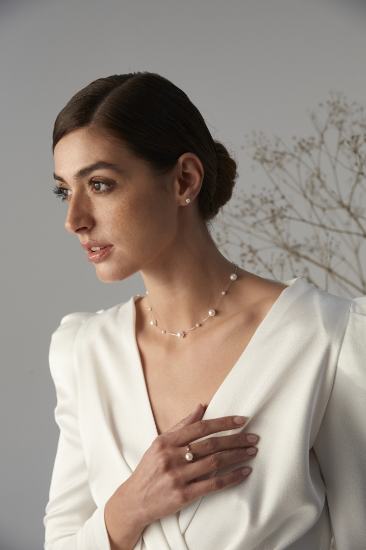 Lănțișor cu perle Swarovski, din argint placat cu rodiu sau aur galben de 14K.