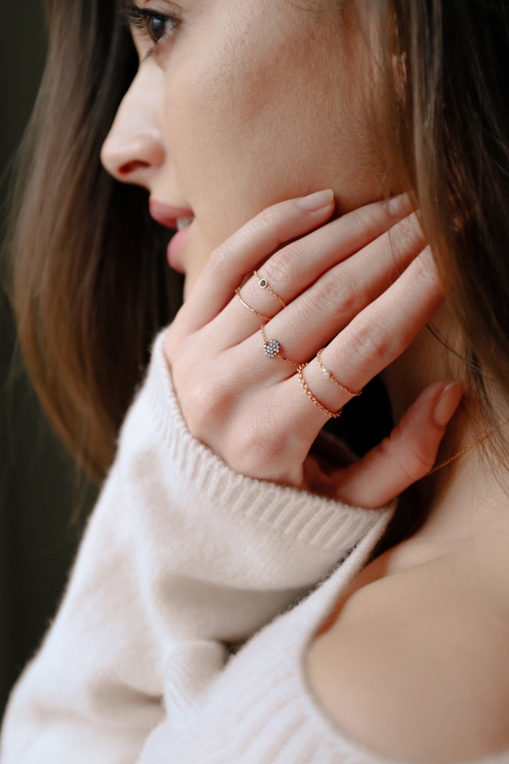 Inel Pave Brown Diamonds on Chain - 18KT